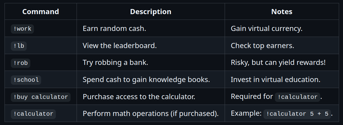 The screenshot already provided most of the hints needed to solve the CTF. However, we won’t be using the image or inviting the bot using the client ID from the screenshot, as the bot is now down. Instead, I encourage you to set up the bot locally using Docker and abuse it in that environment.